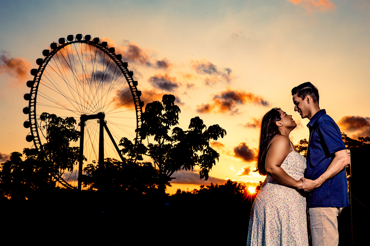 O ensaio de Pre Wedding de Camila e André no Parque Villa Lobos foi um dia de pura emoção e romance. Começando em um jardim florido, capturamos a leveza e cumplicidade do casal em meio à natureza. Depois, em um piquenique ao ar livre, os momentos de intimidade e descontração resultaram em fotos cheias de carinho. O ápice foi ao pôr do sol, com a roda gigante ao fundo, criando imagens de pura magia. Para finalizar, o carrossel trouxe um toque encantador e nostálgico. O Parque Villa Lobos oferece cenários perfeitos para ensaios pré-wedding únicos e emocionantes, e como fotógrafo de casamento, minha missão é eternizar esses momentos especiais.