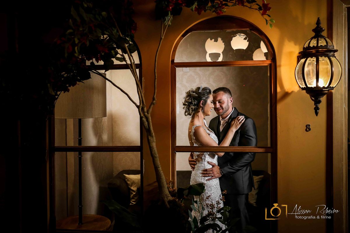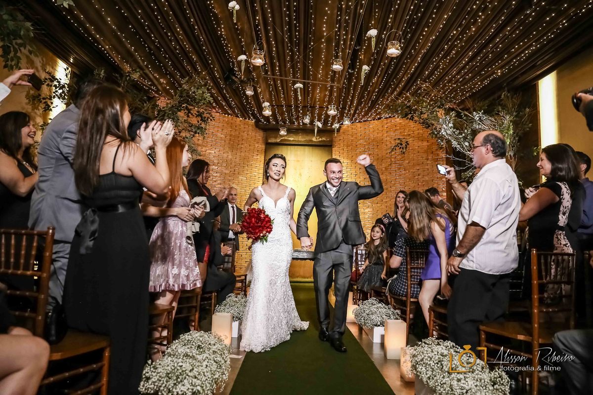 A cerimônia e recepção foram realizados no Buffet Napoleão em São Bernardo do Campo, com uma decoração rústica clássica.